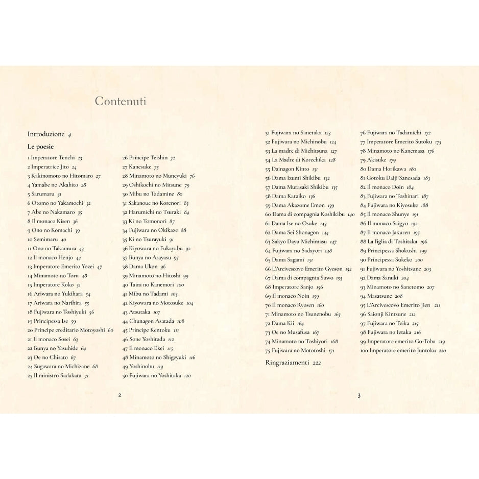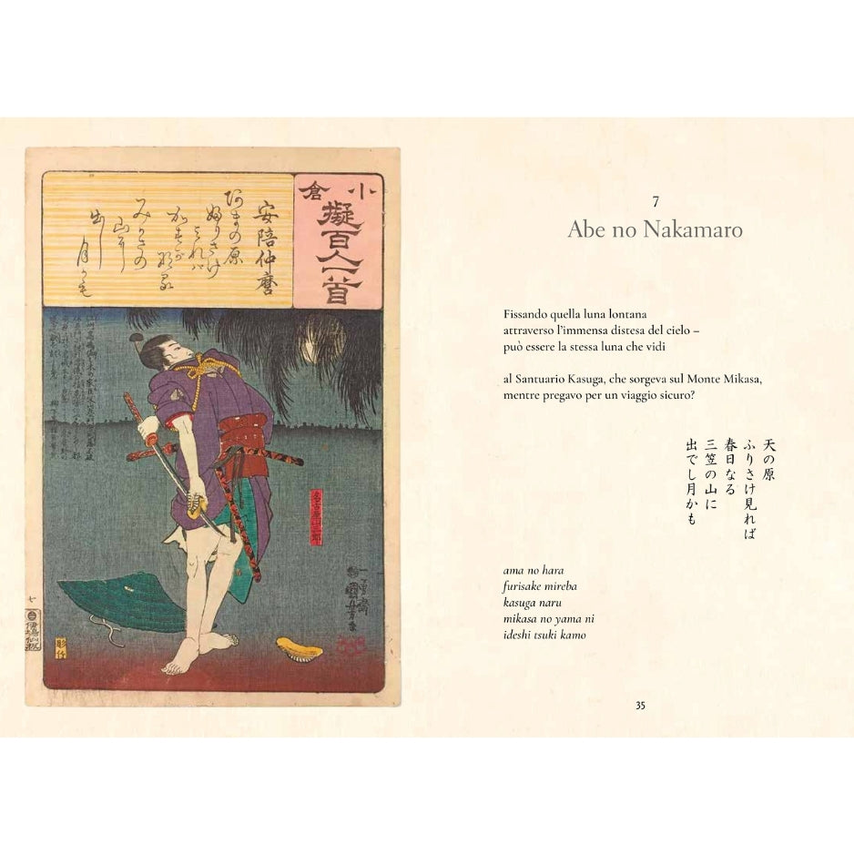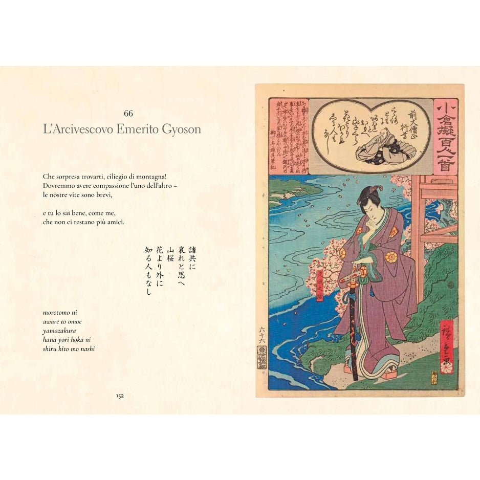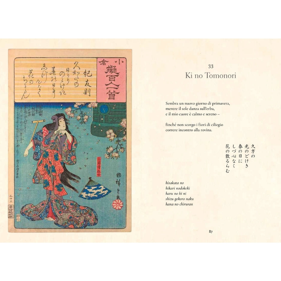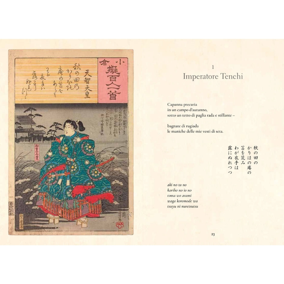 L’antologia più famosa della poesia giapponese: Hyakunin Isshu (“Cento poesie di cento poeti”). Questa raccolta senza tempo, compilata nel XIII secolo dal poeta Fujiwara no Teika, riunisce le opere di 100 poeti del VII e VIII secolo, ancora oggi molto lette e apprezzate in Giappone. In questo volume, perfetto per gli appassionati di poesia e cultura giapponese, ogni poesia è presentata in giapponese, con la sua trascrizione e la traduzione in italiano. L’opera include un’introduzione di Michael Freiling e magnifiche illustrazioni tratte da incisioni del XIX secolo. Regalo ideale per gli amanti della cultura giapponese, della poesia e dell’arte.